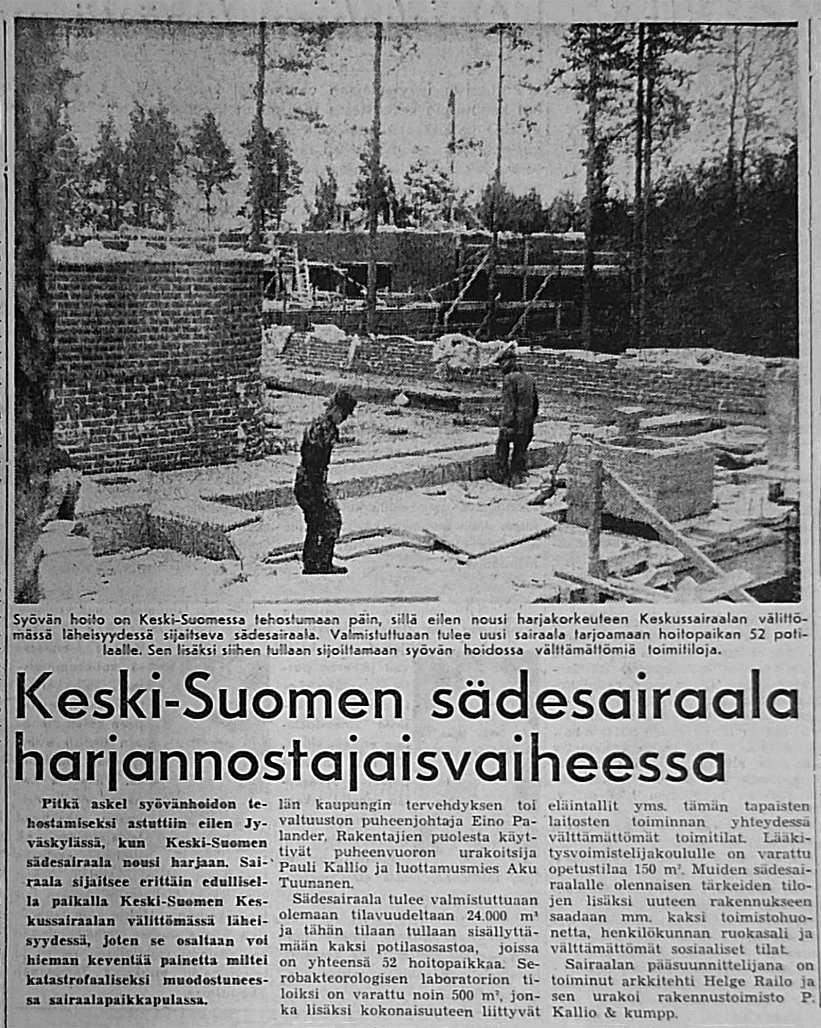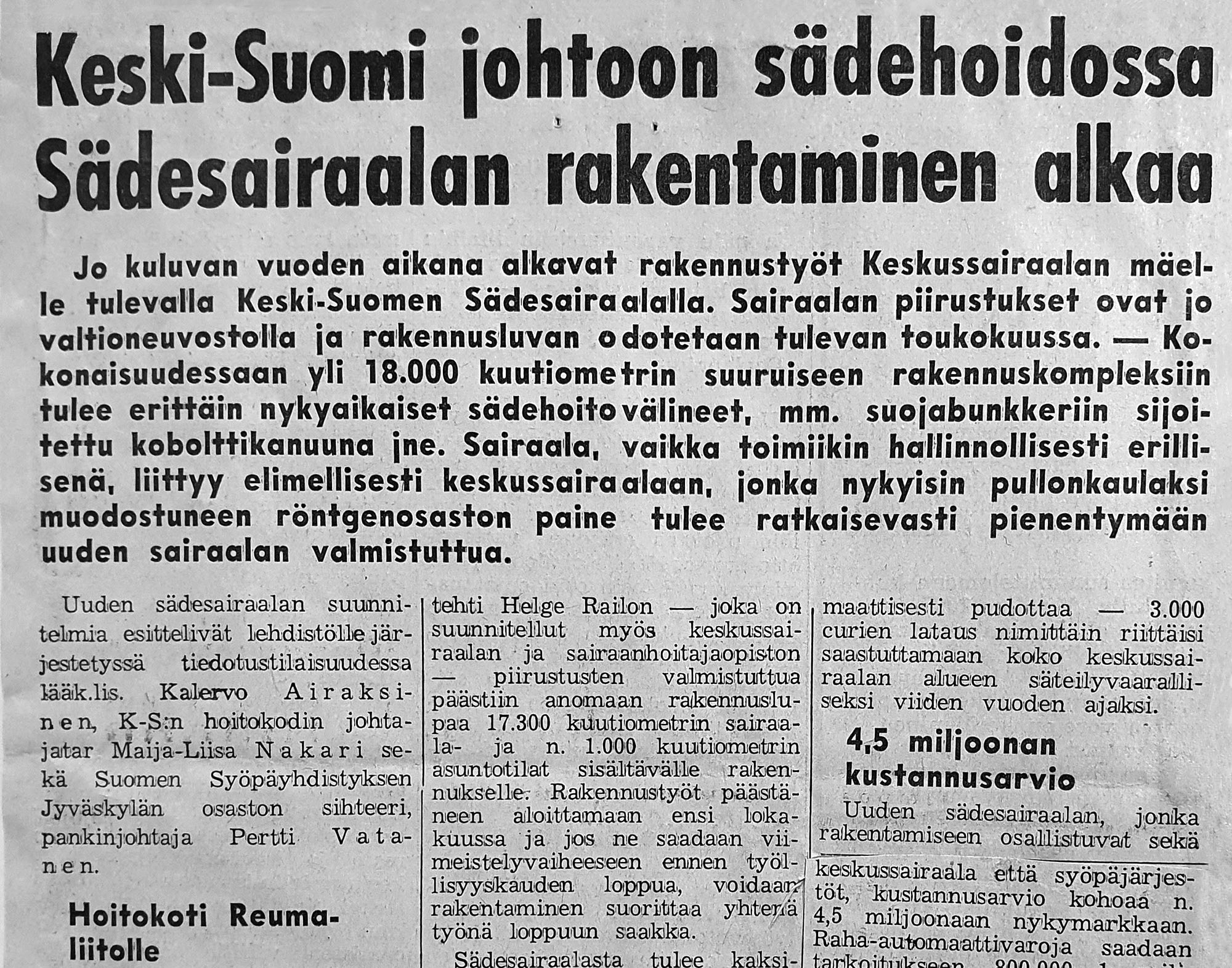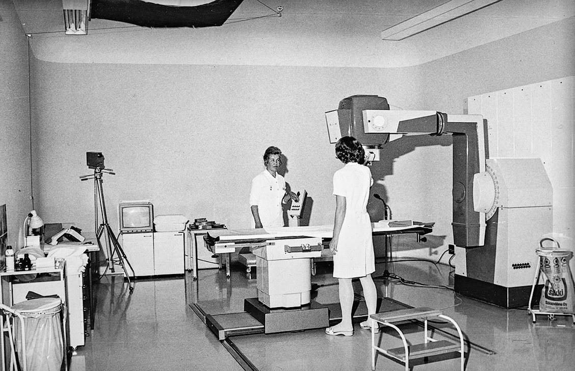 Syöpäsairauksien yleistyminen ja niiden hoitomahdollisuudet otettiin jossain määrin huomioon keskussairaalaverkon rakentamisessa 1950-luvulla. Keski-Suomen keskussairaalan röntgenosaston yhteyteen saatiin terapiaosasto, jossa voitiin antaa sekä syväterapiaa että pintahoitoa lähiröntgenkoneella.